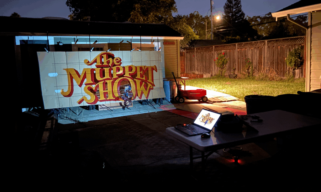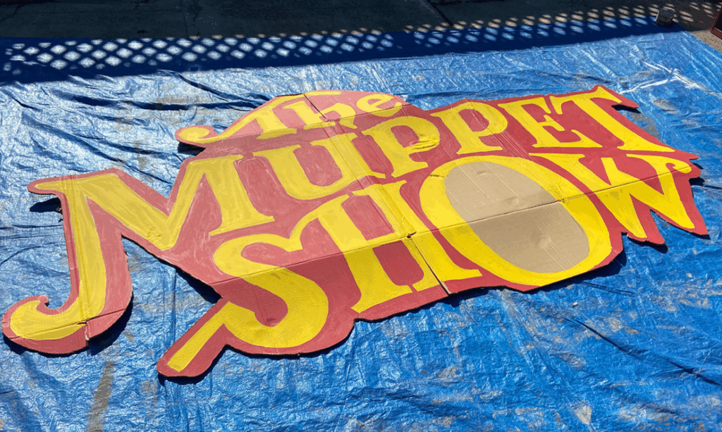 We wanted to capture the magic of the Muppet Show theater as part of the Halloween House, and what’s more iconic than the Muppet Show sign hanging in front of long red curtains? But, how to make that sign…
