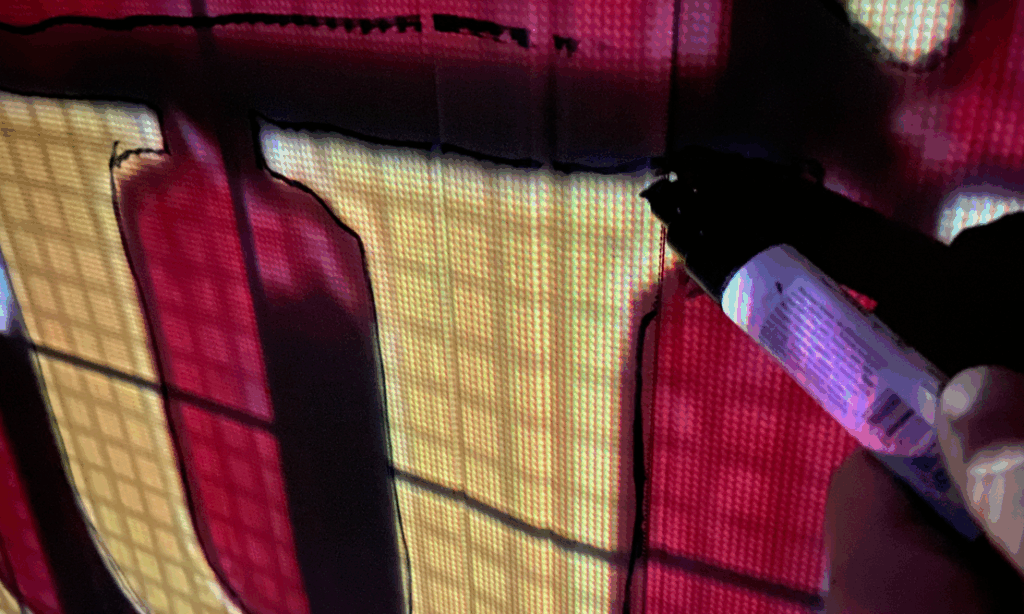 We started, as we often do with large pieces, by projecting the design on to large cardboard and then tracing the outlines with a large pen.