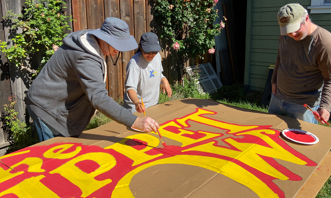 At our next Community Painting Day, several folks undertook the task of cutting out the sign so it is ready to hang!