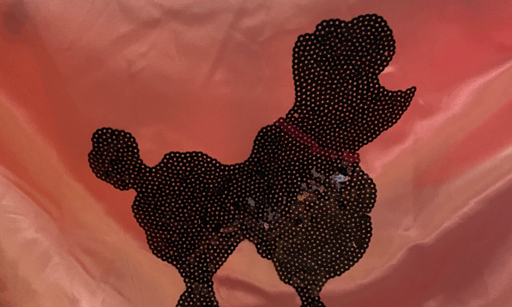Once it had dried, I cut out around where I had painted and sewed it on to the jacket, covering the dog that had been there.
