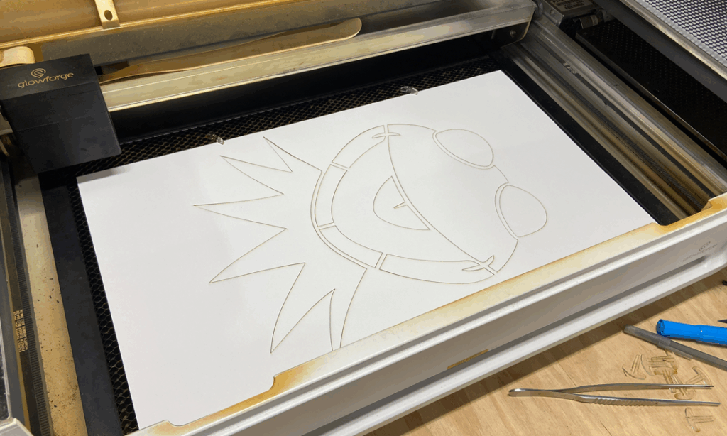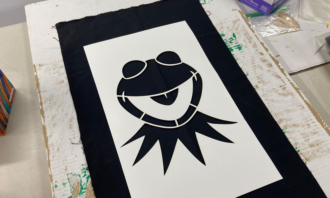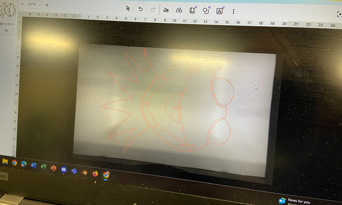 To do that, I sourced an image of Kermit’s head, vectorized in in Adobe Illustrator and then brought those vector paths into my laser cut software.