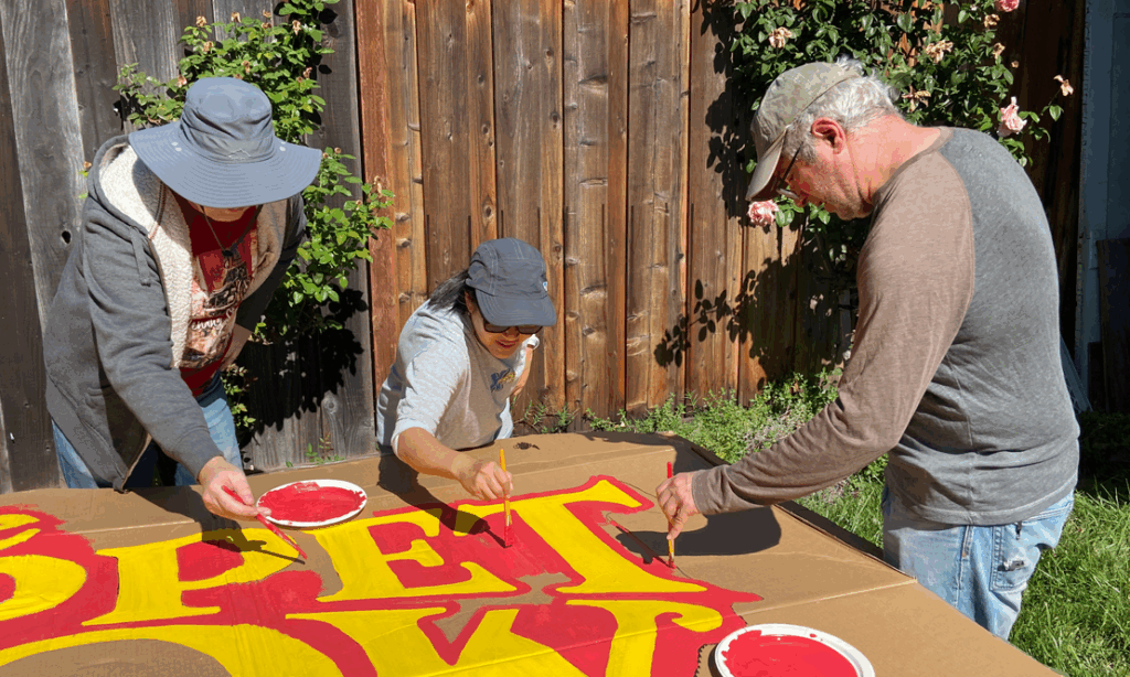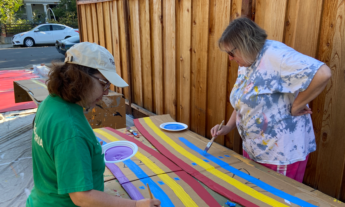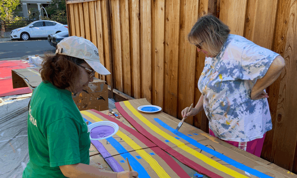 We had two community painting days where friends, neighbors, and co-workers helped create the set pieces of the Muppet-themed Halloween house. Below are some shots from the painting days!