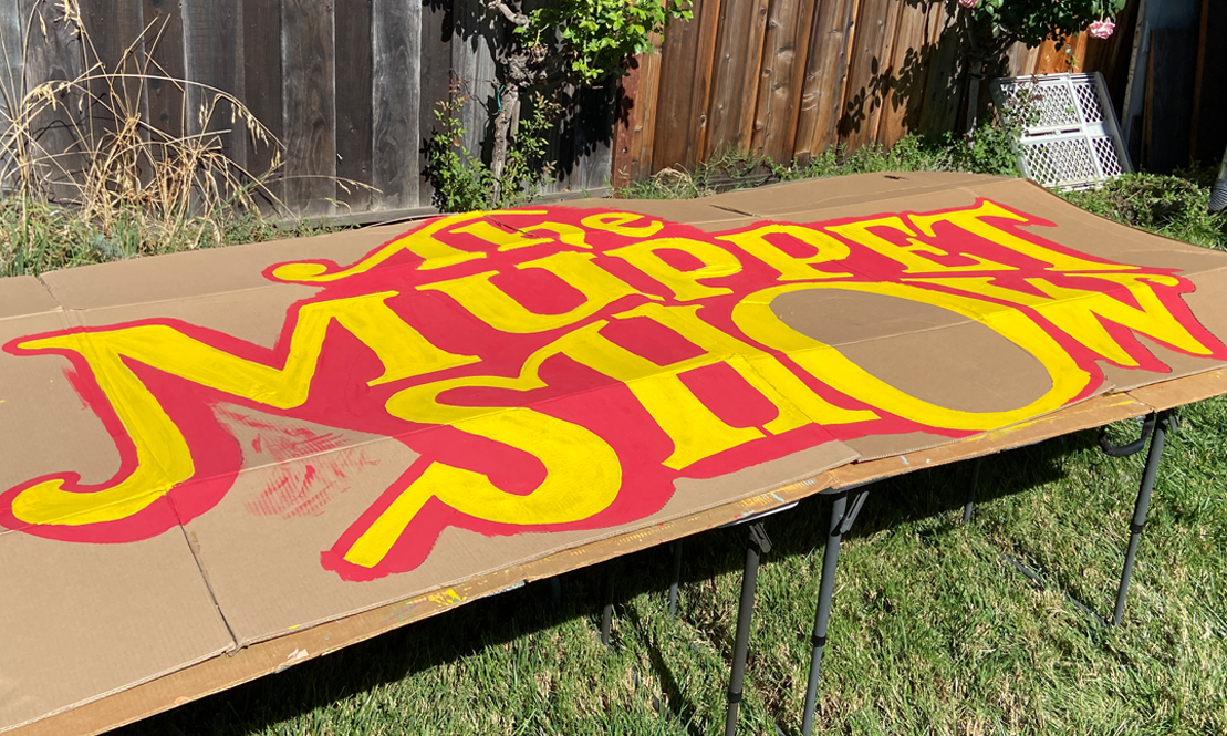 Lots of folks helped paint this giant Muppet Show sign which will hang in front of tall red curtains for the Muppet Show part of the Halloween display!